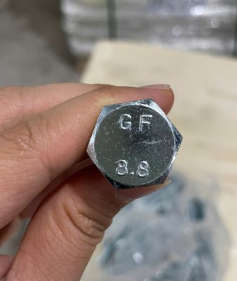 Một điểm dễ dàng phân biệt bulong 8.8 là trên đầu mũ sẽ có khắc số 8.8 như hình dưới:
